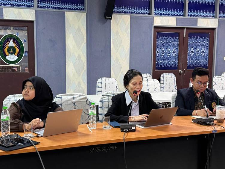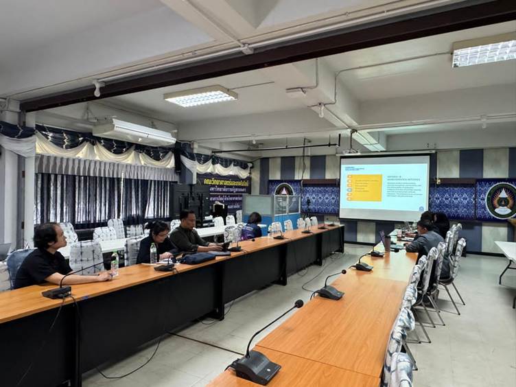 On the first day, the discussion was led by the Dean of the Faculty of Science and Technology at SNRU, Assist. Prof. Dr. Prawit Suwannarong. The material session was opened by Dr. Melania, who delivered an in-depth explanation of how to prepare a Self-Assessment Report (SAR). She emphasized that the SAR is the primary document demonstrating compliance with accreditation criteria and must include a comprehensive analysis of strengths, weaknesses, opportunities, and challenges (SWOC).