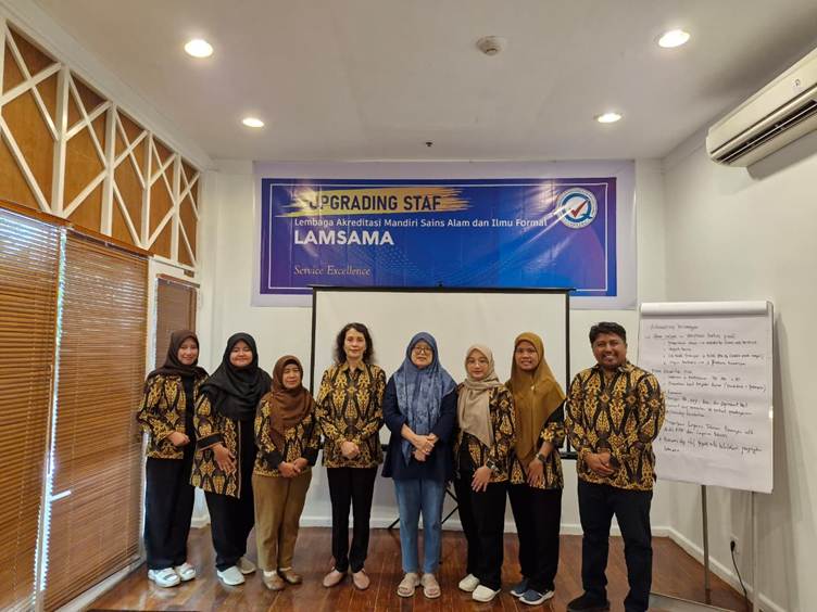 The workshop is part of LAMSAMA’s commitment to continuously improve the quality of accreditation services through the development of human resource competencies, particularly in providing excellent, responsive, and professional services oriented toward stakeholder satisfaction. The staff upgrading activity was led by LAMSAMA Deputy Director of Finance, Dr. Dra. Melania Suweni Muntini, M.T., and attended by all LAMSAMA staff.