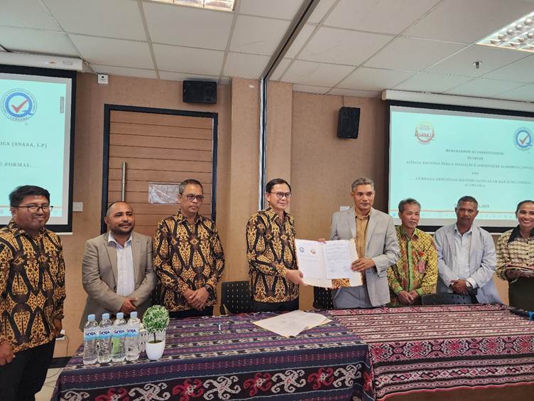 Dili, Timor-Leste — Lembaga Akreditasi Mandiri Sains Alam dan Ilmu Formal (LAMSAMA) resmi menandatangani nota kesepahaman (MoU) dengan Agência Nacional para a Avaliação e Acreditação Académica, I.P. (ANAAA) Timor-Leste dalam rangkaian kegiatan Acreditação Programática de 2025 yang digelar pada 26 Februari 2025 di Pusat Budaya Indonesia (PBI), Dili. Penandatanganan ini juga disaksikan oleh Atase Pendidikan dan Kebudayaan (Atdikbud) Republik Indonesia untuk Timor-Leste sebagai bentuk dukungan terhadap kolaborasi pendidikan kedua negara.